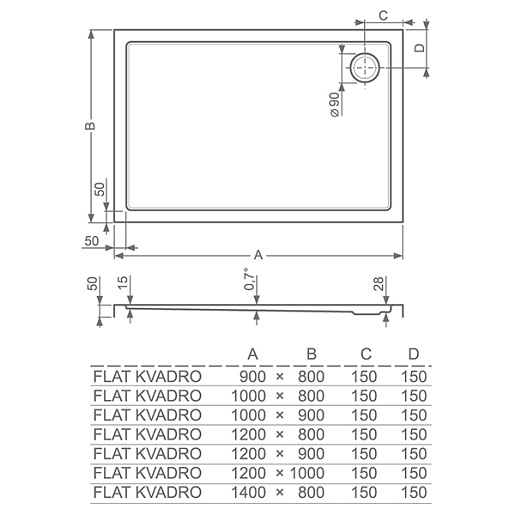 Roltechnik Душевой поддон "FLAT KVADRO 1200x900"