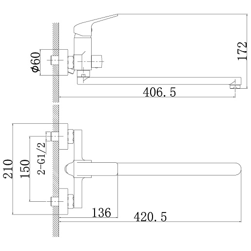 Длина излива, мм: