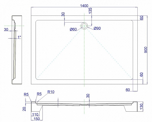 Royal Bath Душевой поддон RB 9140HP 900x1400x130