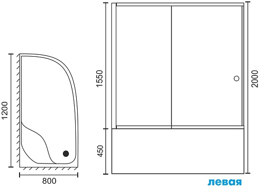 Royal Bath Душевой уголок RB 8120BK-C-BL 120х80х200 L