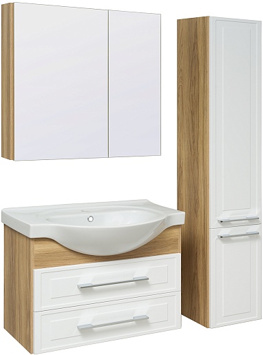 Тумба под раковину Дублин 80 подвесная дуб/белая