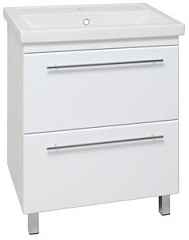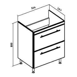Описание: Тумба под умывальник на ножках с двумя выдвижными ящиками. Ящики — на шариковых.направляющих скрытого монтажа с доводчиком, ручки — 2шт , ножки хром — 2шт, ножки пластик — 2шт.