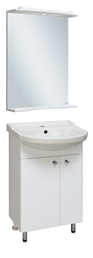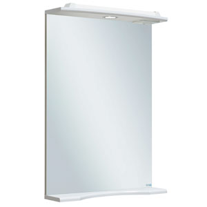 Описание: Зеркало с козырьком и нижней полкой, оборудовано трансформатором мощностью 60 Вт для подключения галогенных светильников со скрытым подключением электропровода, выключателем и розеткой..
