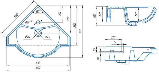 Угловая тумба с раковиной Runo Классик 65 - арт. УТ000004162 / УТ000003756 (4620750028244 / 4640021063071).