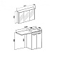 Комплект предусматривает установку стиральной машины под крылом умывальника слева от тумбы.