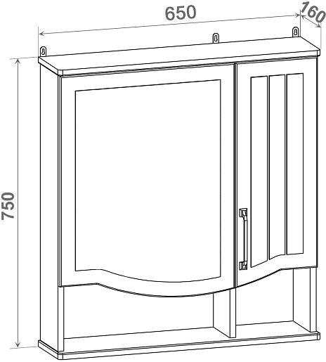 - 2 распашные дверцы, 2 открытые полки.