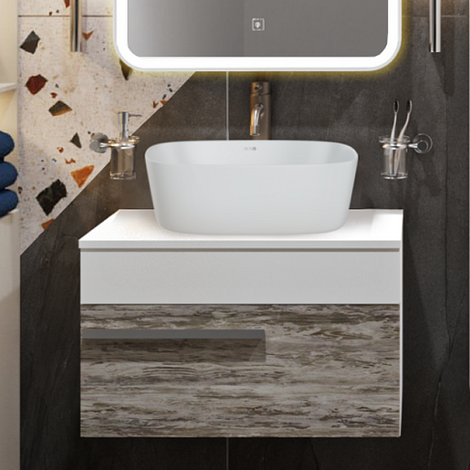 Тумба под раковину Вудлайн 65 скандинавский дуб/белая