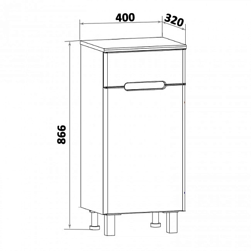 Полупенал на ножках с одним выдвижным ящиком и распашной дверкой. В нижнем отделении - одна внутренняя полка. Петли со встроенным доводчиком, ящик на шариковых направляющих полного выдвижения. Выпускается только в правом исполнении.Производитель: