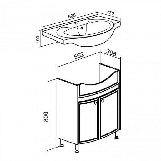 - тумба под раковину Runo Аликанте 60: распашная дверца - 2 шт., ручка - 2 шт.