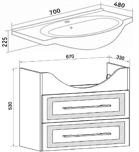 Подвесная тумба с раковиной Runo Дублин 70 - арт. 00-00001066 / УТ000002235 (4620750029340 / 4690311008978).