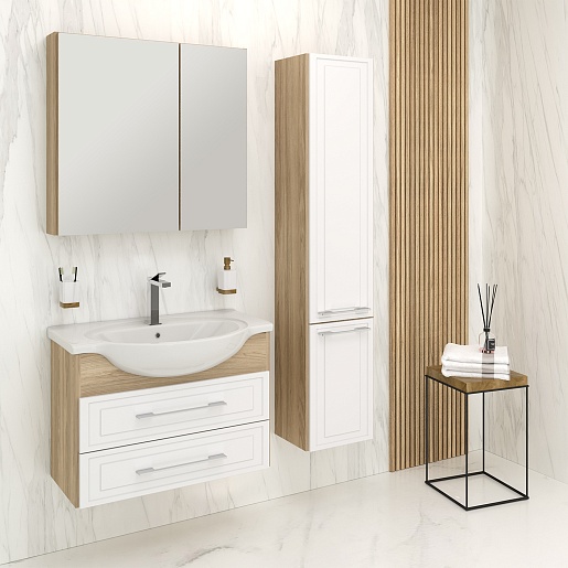 Тумба под раковину Дублин 80 подвесная дуб/белая