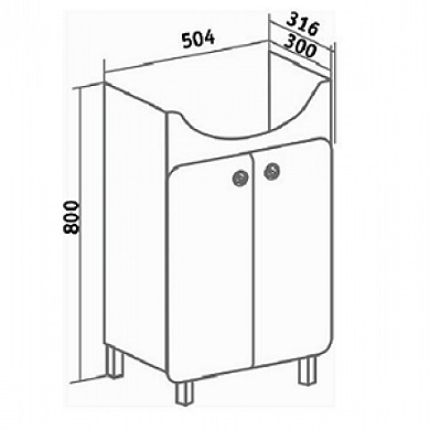 - Тумба под раковину Капри 55: тумба с двумя дверками и внутренней полкой. Петли со встроенным доводчиком.