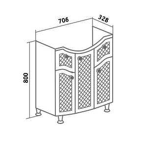 - Тумба под раковину с двумя распашными дверками и внутренней полкой. Петли со встроенным доводчиком.