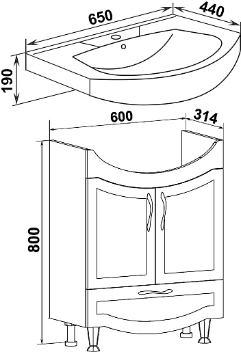 Тумба с раковиной Runo Марсель 65 - арт. 00-00001033 / 00000000438 (4620750029043 / 4620008192475).