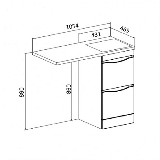 - Тумба с двумя выдвижными ящиками на шариковых направляющих скрытого монтажа с доводчиком. Фасад и корпус изготовлены из влагостойкого МДФ, облицованной пленкой ПВХ. Тумба устанавливается на 4 регулируемые ножки, скрытые за нижней съемной фальш-панелью.