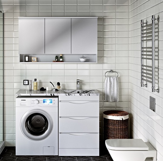 - Тумба с тремя выдвижными ящиками на шариковых направляющих скрытого монтажа с доводчиком. Фасад и корпус изготовлены из влагостойкого МДФ, облицованной пленкой ПВХ. Тумба устанавливается на 4 регулируемые ножки, скрытые за нижней съемной фальш-панелью.