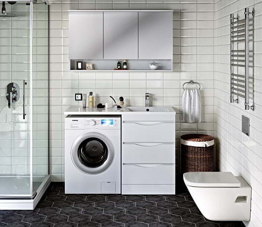 - Тумба с тремя выдвижными ящиками на шариковых направляющих скрытого монтажа с доводчиком. Фасад и корпус изготовлены из влагостойкого МДФ, облицованной пленкой ПВХ. Тумба устанавливается на 4 регулируемые ножки, скрытые за нижней съемной фальш-панелью.
