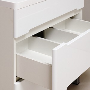 - Тумба подвесная с одним выдвижным ящиком. Ящик — на шариковых направляющих скрытого монтажа с доводчиком, подвесы — 2шт.
