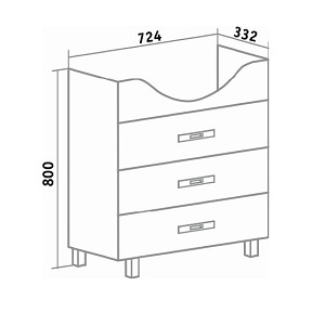 - Тумба с тремя выдвижными ящиками на шариковых направляющих с доводчиком.