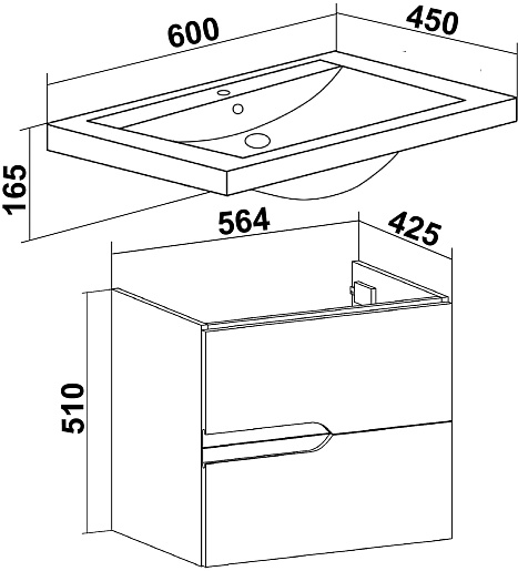 Тумба с раковиной Runo Стокгольм 60 - арт. 00-00001123 / УТ000002246 (4620750029784 / 4690311045409).