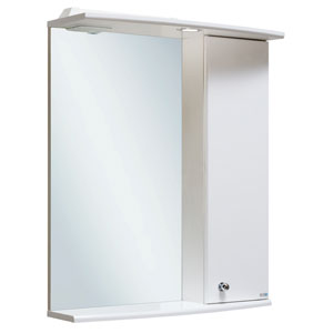 Описание: Зеркало с козырьком и нижней полкой, закрытое отделение сбоку . Шкаф оборудован трансформатором мощностью 60 Вт для подключения галогенных светильников со скрытым подключением электропровода, выключателем и розеткой.
