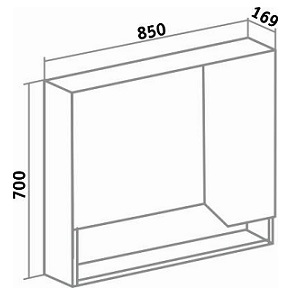 Описание: Зеркальный шкаф без подсветки с двумя дверками, одна из которых откидывается вверх, а вторая — распашная. Внутренние полки — из закаленного стекла толщиной 6мм, закреплены в хромированные полкодержатели с фиксатором. Петли со встроенным доводчиком. Можно дополнительно доукомплектовать светильником.