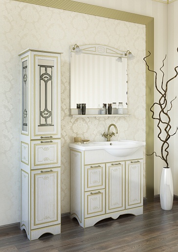 Sanflor Мебель для ванной Адель 82 L белая, патина золото