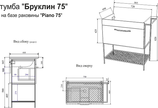 Тумба с раковиной Sanflor Бруклин 75 Piano - арт. С16782.