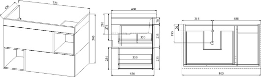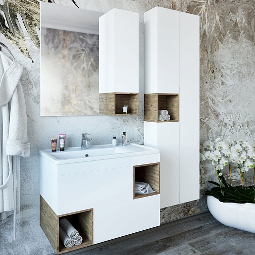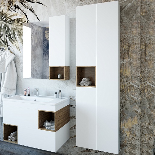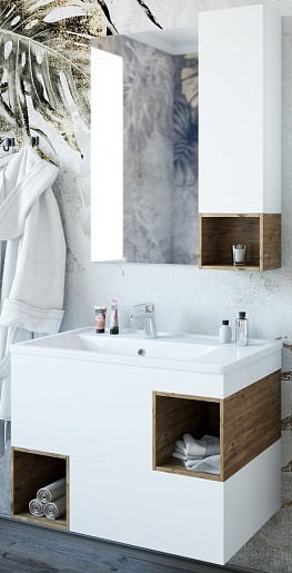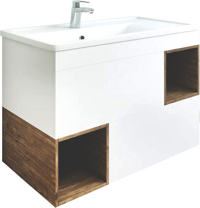 - Тумба под раковину Даллас 80: выдвижные фасады, открытые полочки, доводчики