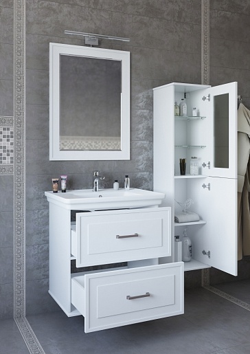 - Тумба под раковину Модена 75: выдвижные фасады, доводчики, фурнитура-состаренное серебро