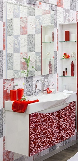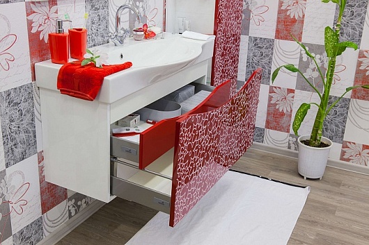 Тумба для умывальника Санфлор 100 красная/патина белая