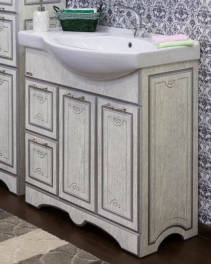 Sanflor Тумба для умывальника Адель 82 L белая, патина серебро
