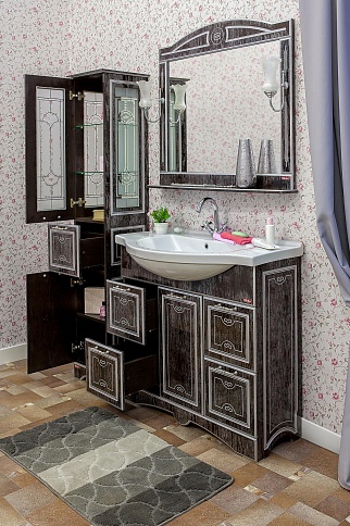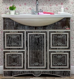 Тумба для умывальника Адель 100 венге, патина серебро