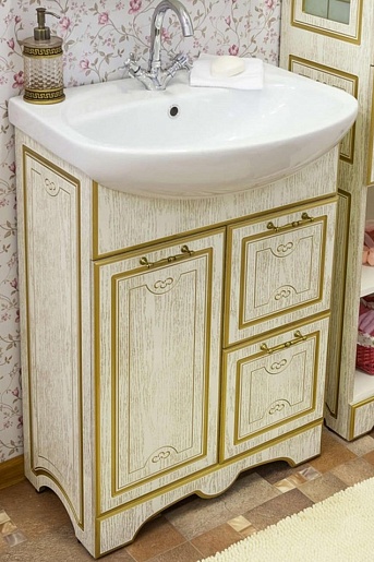 Sanflor Тумба с раковиной Адель 65 белая, патина золото