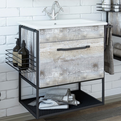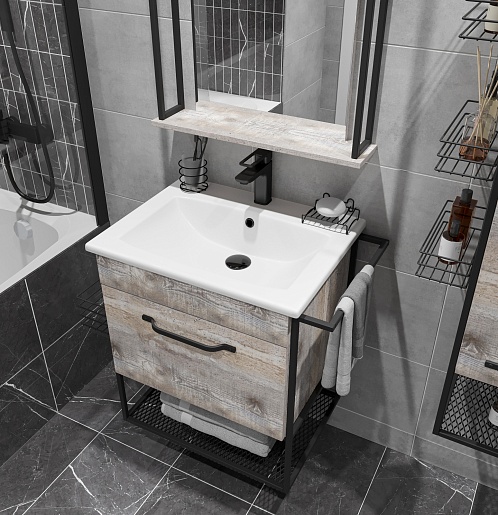 Sanflor Тумба с раковиной Бруклин 60 подвесная бетон пайн экзотик/черный муар