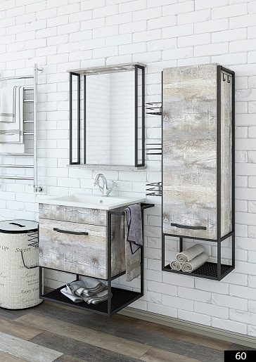 Тумба под раковину Бруклин 60 подвесная бетон пайн экзотик/черный муар