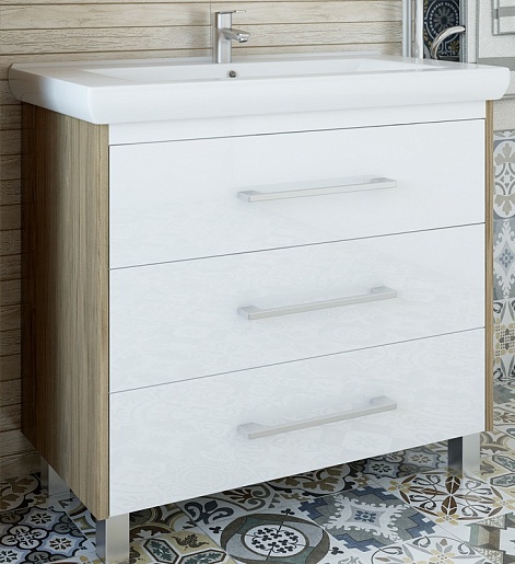 Sanflor Тумба с раковиной Ларго 100 вяз швейцарский/белый