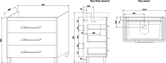 - Тумба под раковину Ларго 100: выдвижные фасады, механизм доводчика