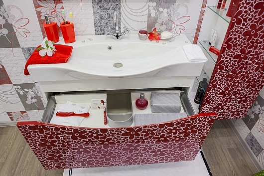 Тумба для умывальника Санфлор 100 красная/патина белая