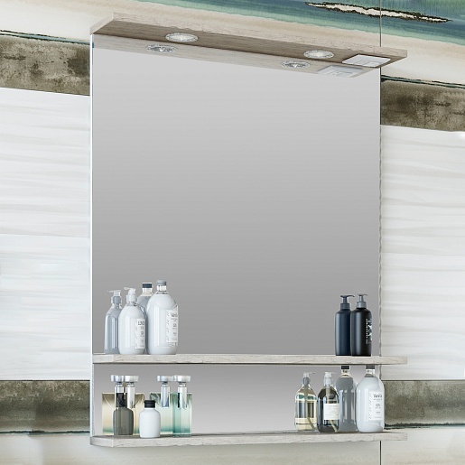 Оснащение зеркала: светодиодная подсветка, розетка, полки, крепления.
