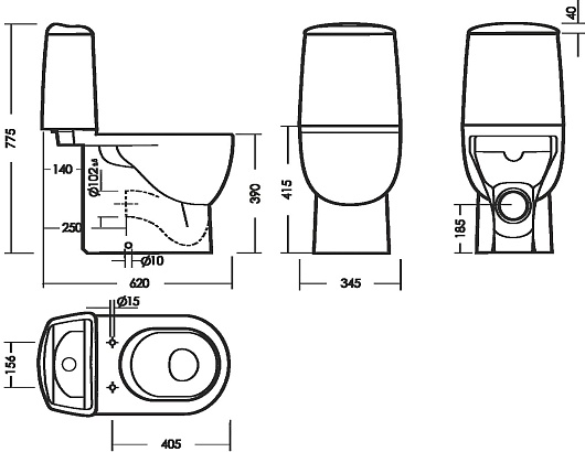 Напольный унитаз-компакт Sanita Luxe Best Color Black (435818) - арт. WC.CC/Best/2-DM/BLK.G/S1.