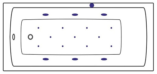 - аэромассажная система (10-12 форсунок AERO-JET) с функцией регулировки интенсивности массажа