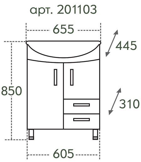 СанТа Мебель для ванной Элеганс Лира 65 с ящиками
