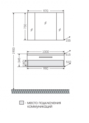 - тумба под раковину: выдвижной ящик полного выдвижения с плавным закрыванием, интегрированная ручка.