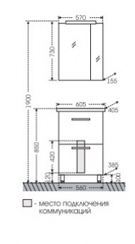 - тумба под раковину: 2 выдвижных ящика полного выдвижения с плавным закрыванием, металлические ручки (хром), ножки
