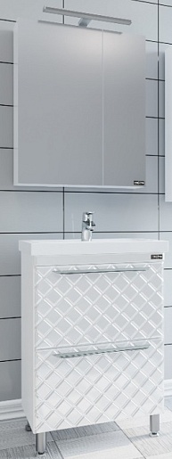 Комплектация: Фасад изделия из МДФ с покрытием ПВХ пленкой методом мембранно-вакуумного прессования, что позволяет достичь почти 100% водонепроницаемости. Светильник входит в комплект.