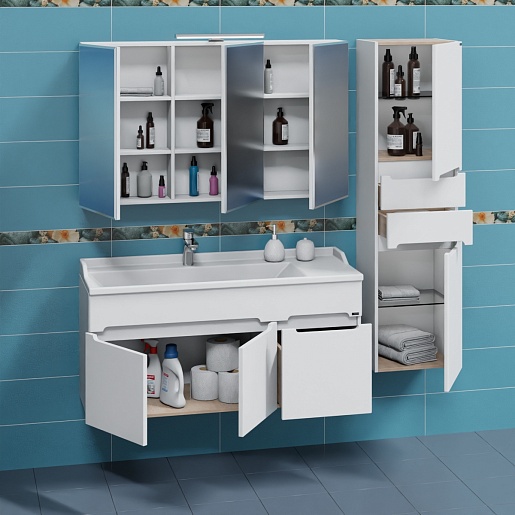 В комплекте: тумба, раковина, зеркальный шкаф, комплект креплений.