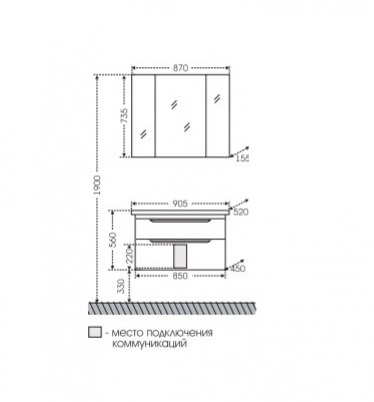 Размеры ШxГ: 900x520х560 мм.