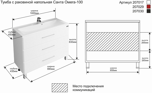 Тумба с раковиной «Омега 100» напольная - арт. 207017.