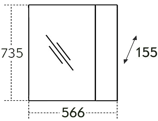 Фасад изделия из МДФ с покрытием ПВХ пленкой методом мембранно-вакуумного прессования, что позволяет достичь почти 100% водонепроницаемости. Зеркальное полотно без фацета.